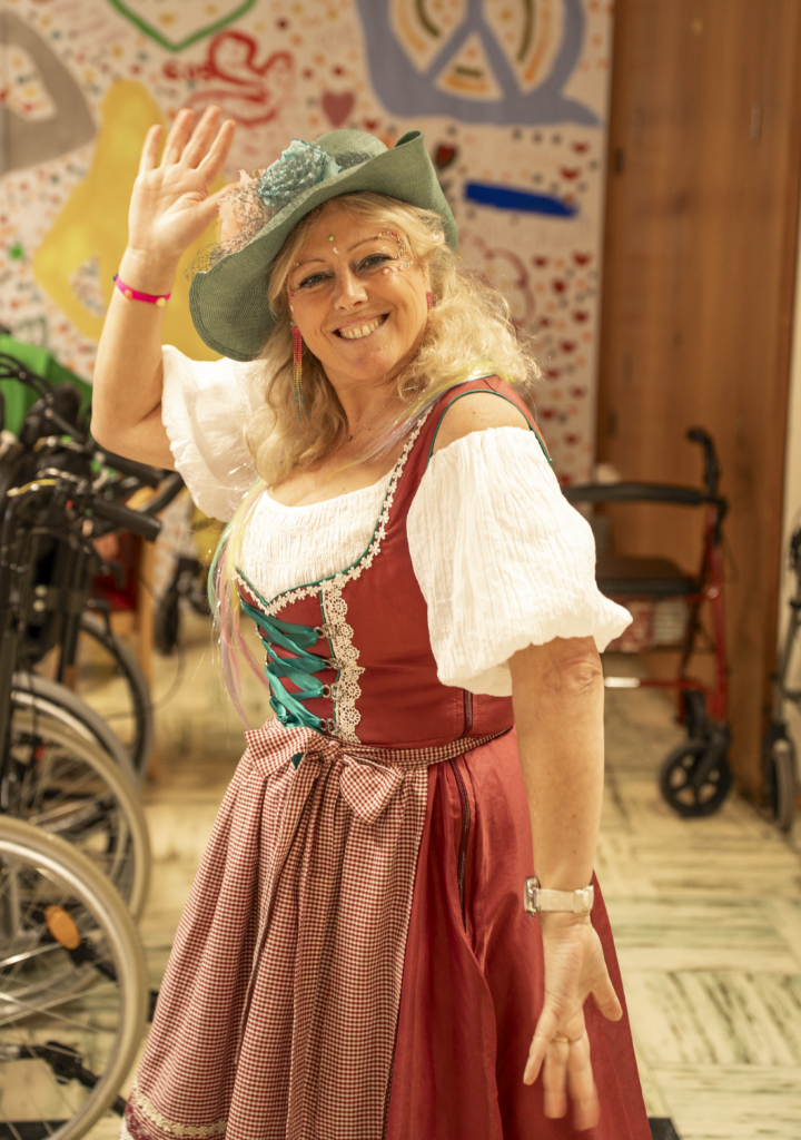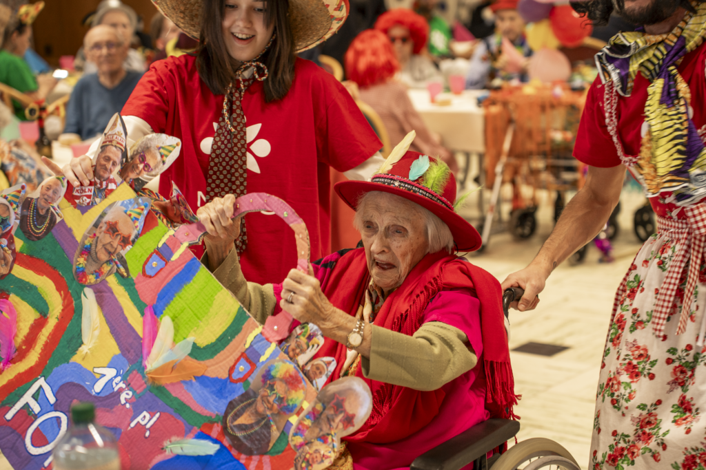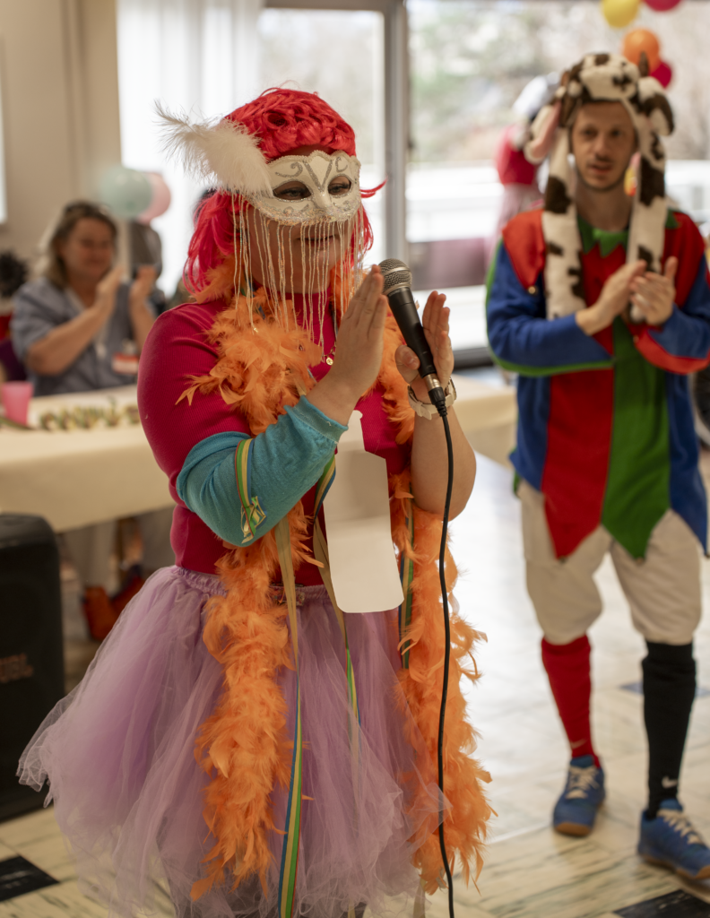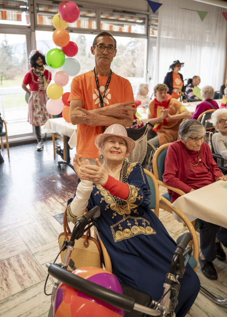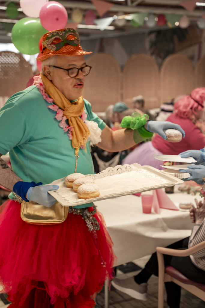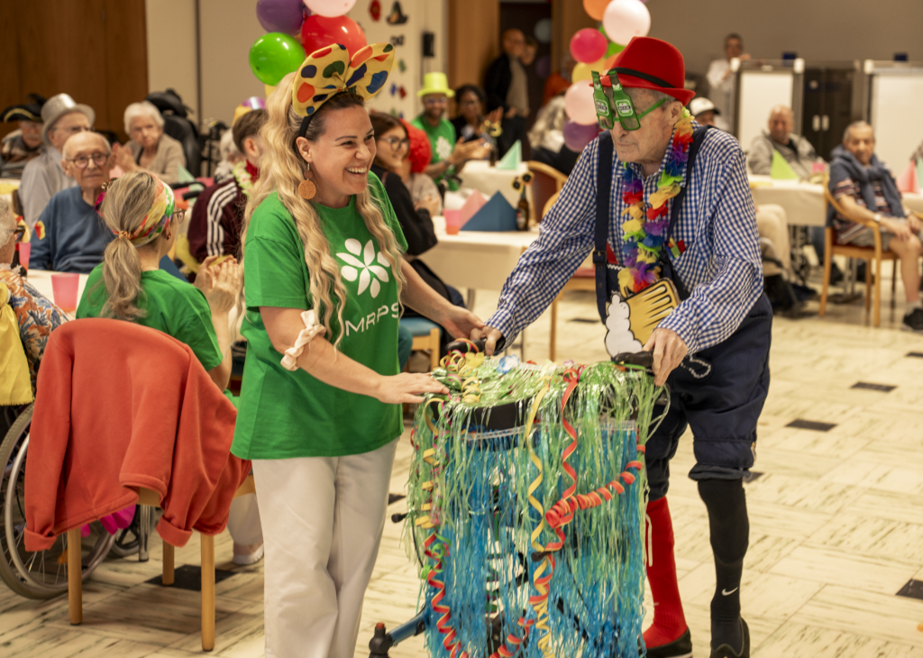 Cette année, notre EMS a vibré au rythme du carnaval de Cologne. Une thématique festive et colorée qui a inspiré résidents et équipes pour transformer le temps d’un après-midi notre salle à manger en véritable scène de fête. Les couleurs étaient à l’honneur. Guirlandes, ballons , chapeaux décalés, colliers multicolores… Les déguisements rivalisaient d’imagination, beaucoup ont été imaginés et confectionnés à partir de matériaux déjà disponibles, preuve qu’avec un peu d’inventivité, on peut créer de très beaux effets.