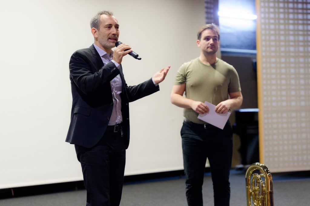 La MRPS a eu la joie d’accueillir dans sa salle de spectacle le jeune musicien Iago Prévost, élève de la Haute école de musique de Genève. Son récital au saxhorn basse et à la trompette basse a offert un moment musical d’une grande finesse, apprécié par les résidentes, résidents, familles et collaborateurs présents. À l’occasion de cette prestation, Iago a reçu Le premier Prix MRPS des mains de notre Directeur général Adrien Bron, distinction créée pour encourager les jeunes musiciens en formation et reconnaître l’excellence de leur parcours.
