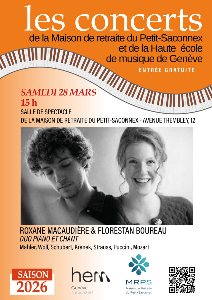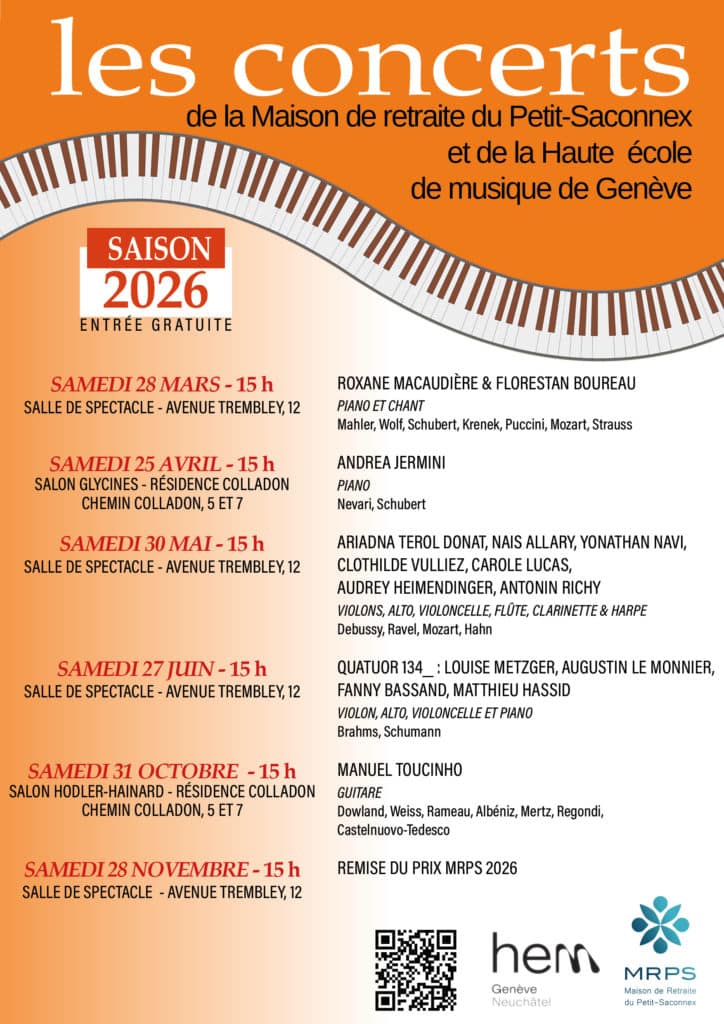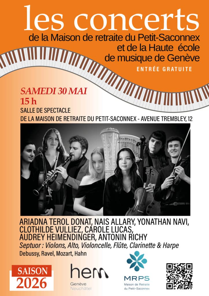 La MRPS a le plaisir de poursuivre son partenariat exceptionnel avec la Haute école de musique de Genève (HEM), initié afin d’offrir à ses résidents, à leurs familles et aux habitants du quartier une saison musicale unique.